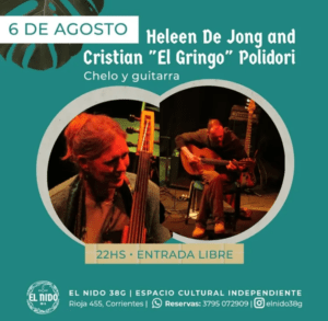 Hoy sábado, El Nido 38g trae una propuesta diferente para disfrutar estos días hermosos que nos esta regalando el invierno. El folklore latinoamericano se reúne de la mano de Heleen de Jong y Cristian “el gringo” Polidori.
